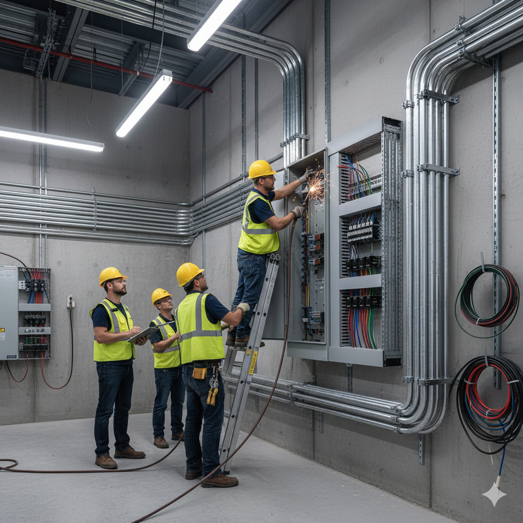 Complete electrical panel upgrade for a 10-story commercial complex in South Delhi, improving energy efficiency by 30%.
